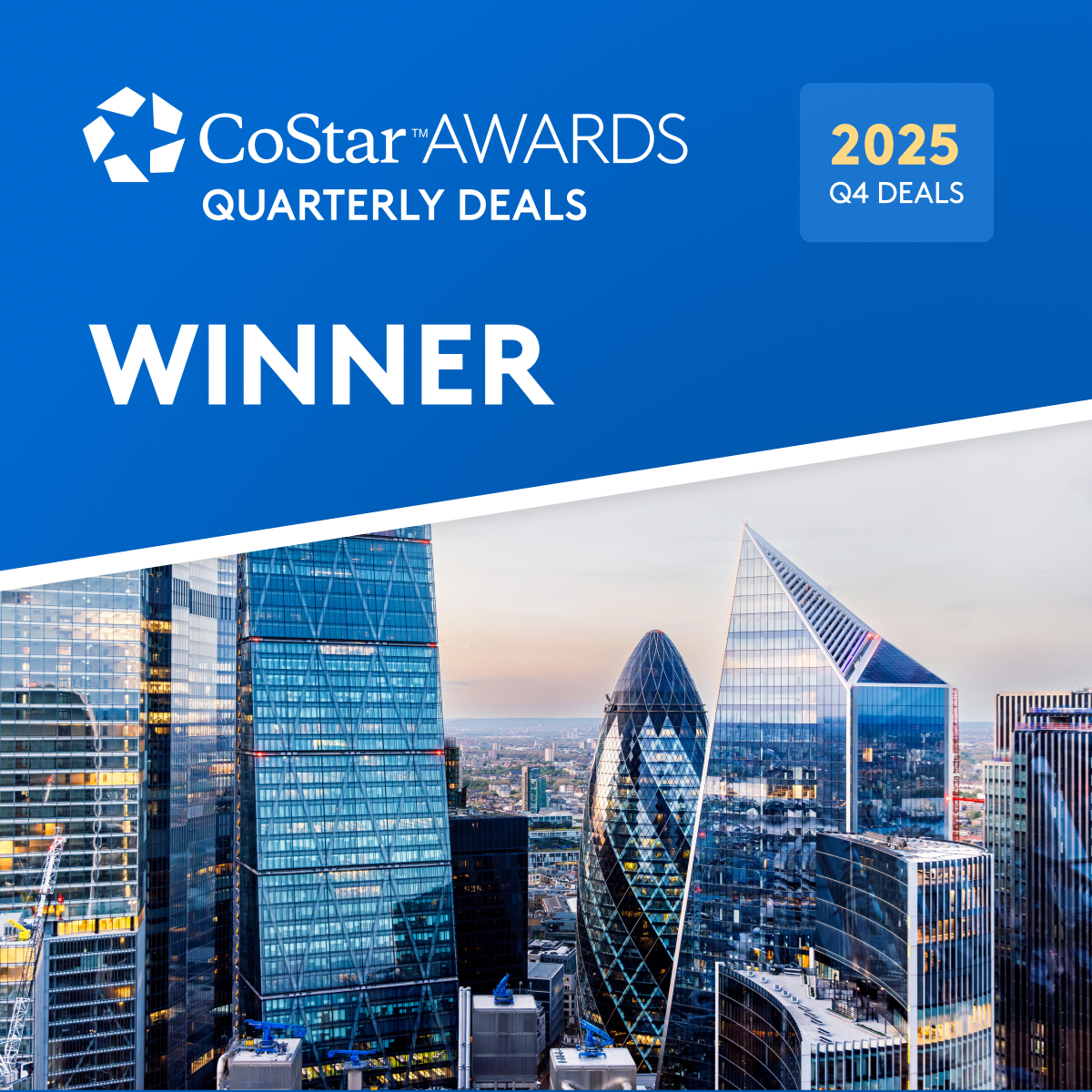 Our Director, Andrew McFarlane Holt has been confirmed as a winner of the CoStar Awards Quarterly Deals.